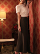 ダークブラウンのボブヘアが肩元で軽く揺れ、整った顔立ちと涼し気な丸い瞳が、可愛らしさと上品さの両方を際立たせます。